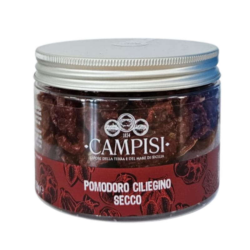 Il Pomodoro Ciliegino Secco Campisi è una specialità artigianale che racchiude tutto il calore del sole siciliano e la passione per la tradizione. I ciliegini, accuratamente selezionati e tagliati a mano, vengono salati ed esposti ai raggi diretti del sole di Marzamemi, seguendo un metodo antico tramandato da generazioni.
